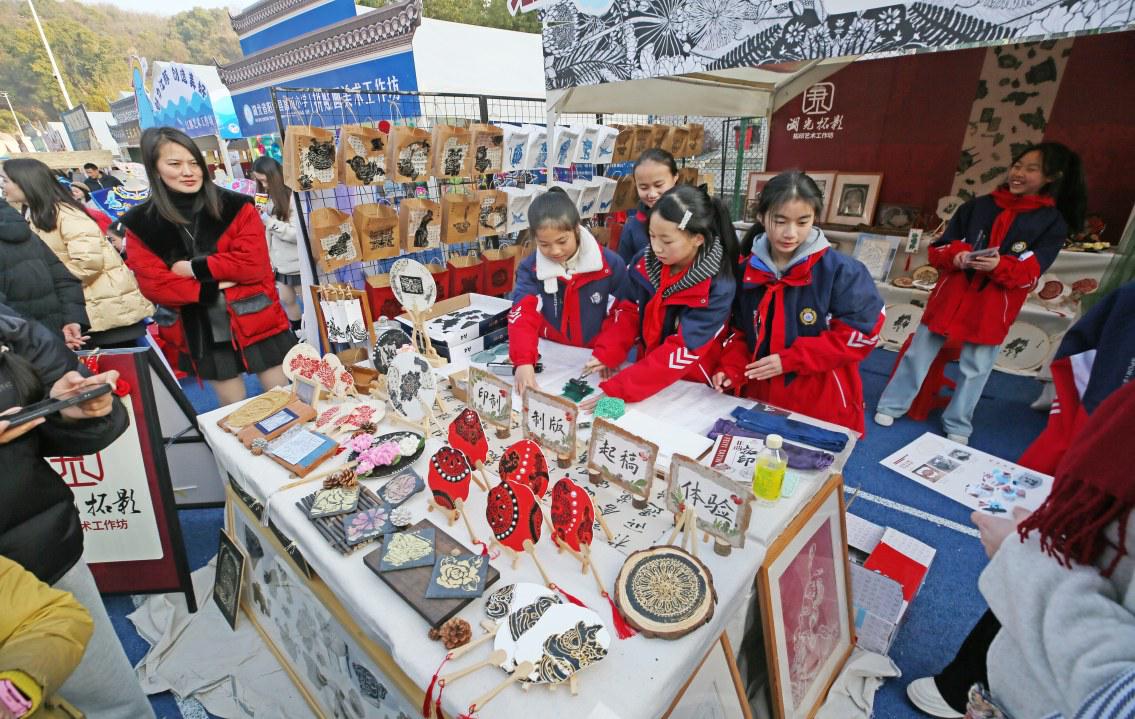 上午9时,活动尚未正式拉开帷幕,23个艺术工作坊已率先热闹起来。这些特色展位如同23个浓缩的文化窗口,既有对非遗技艺的传承坚守,也有对现代创意的大胆探索,更有对本土文化的深情诠释。每个工作坊均设置了作品展示区与互动体验区,学生们不仅能欣赏精美成果,更能亲手参与创作,还能获得精美书签,他们在触摸与实践中感受艺术的温度与文化的力量。