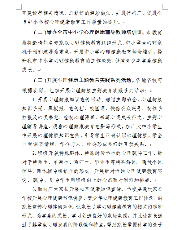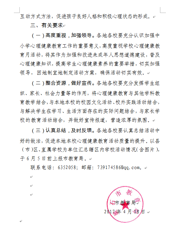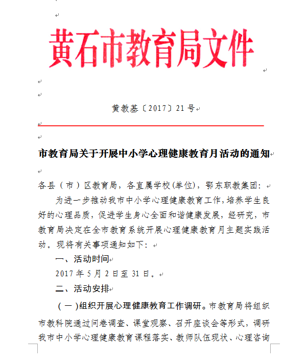 市教育局关于开展中小学心理健康教育月活动的通知