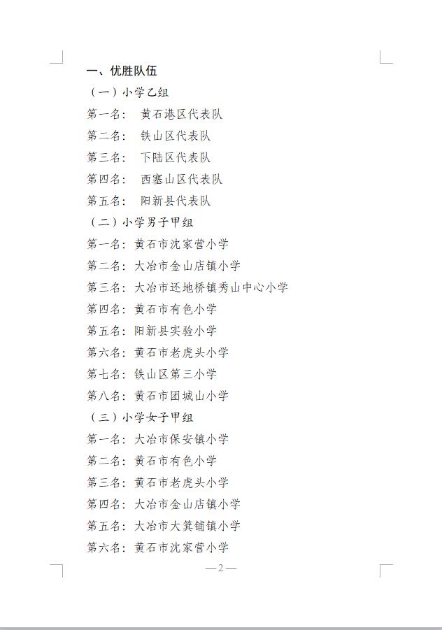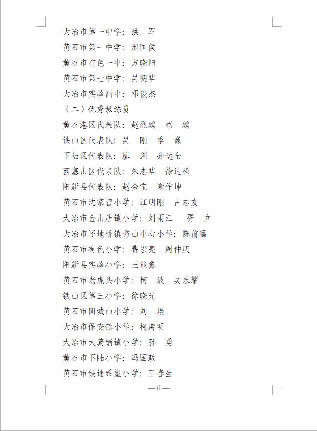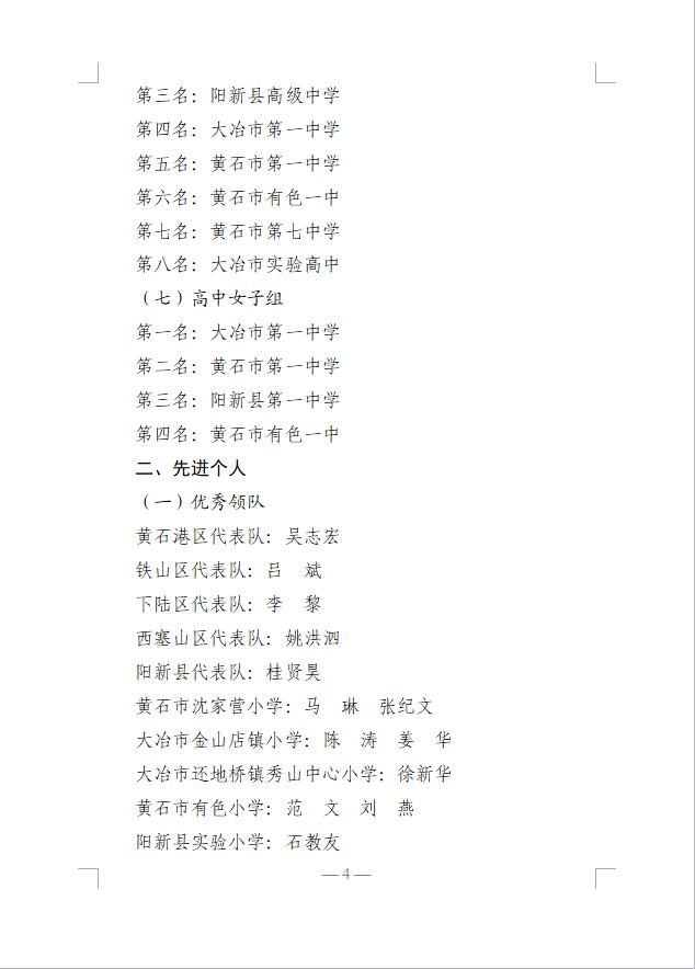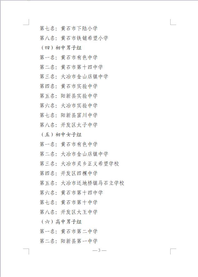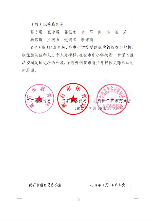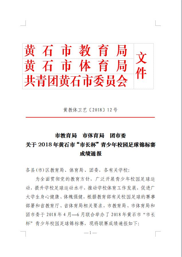 市教育局 市体育局 团市委 关于2018年黄石市“市长杯”青少年校园足球锦标赛成绩通报