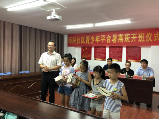 为更好地服务社区,服务居民,市教育局为社区小朋友捐赠课外书籍,并选派了李春华等12名教师志愿者分组开展志愿服务,每天为社区孩子们进行课业辅导和兴趣培养。自青少年平台暑期班开办以来,市教育局结合“四点半学校”,积极将师院社区打造为“未成年人之家”“留守儿童之家”“党员干部教师锻炼阵地”“大学生就业创业实践基地”,积极选派优秀教师志愿者、党员代表分批进社区开展志愿服务活动,用优质的教育、优质的服务、优良的作风、优美的环境,打造教育精品,把师院社区青少年平台真正建设成为广大青少年的“学园、乐园、趣园”,极大地解决社区居民的后顾之忧。