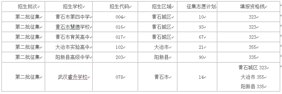 黄石市2018年高中阶段学校招生第二批录取学校征集志愿公告