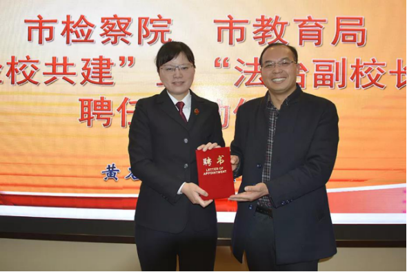 12月19日,“检校共建”暨“法治副校长”聘任启动仪式在市检察院召开。市检察院党组书记、检察长梁莉和市教育局党组书记、局长张足意出席仪式。