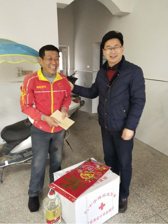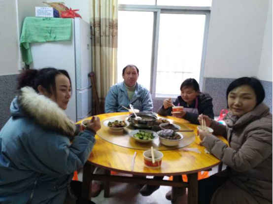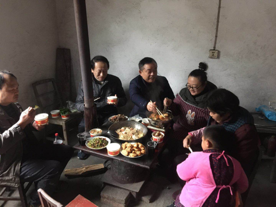 2019年1月19日,星期六,大寒节气来临之前,市教育局全体机关干部,市民办教育行业党委、市民办教育协会的16名党员和民办学校负责人,一大早就带着准备好的丰盛食材和春节慰问物资赶往驻村帮扶点——阳新县枫林镇湖田村,共同开展“送温暖”活动,与贫困户共吃“一顿家常饭”。短短两个小时车程,大家来到湖田村,马不停蹄地赶向33户“亲戚”家。一时间,僻静的湖田村各组,到处充满着节日的问候和欢乐笑声。