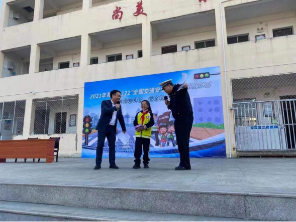 活动现场,民警结合农村交通特征,生动详细地给全校师生讲解交通安全知识,并组织学生参加校车盲区体验活动和交通安全有奖问答等活动,呼吁全体师生提高交通安全意识。同时,来自黄石日报的20名“希望之星小记者”为该校学生送上了爱心礼物,他们手拉手,结对学习交通规则,赢得全校师生们的阵阵掌声。