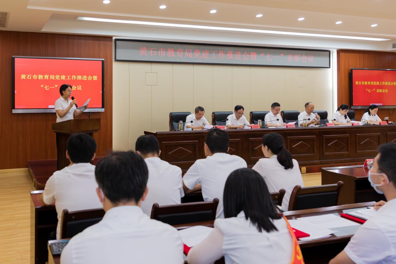 6月30日上午,市教育局召开党建工作推进会暨“七一”表彰大会,隆重庆祝中国共产党成立101周年,部署推进当前党建各项重点工作。会议由市教育局党组成员、副局长周燕霞主持。