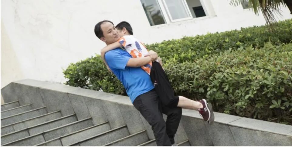 一年级大课间,付振中发现学生小果蜷缩在座位上。原来,患有渐冻症的小果,其实很想去操场上运动,可是每次等他缓慢地走到操场时,大课间活动刚好结束。于是,只要学校或班级开展体育活动,付振中就将小果抱到操场,让小果和同学们一起运动。